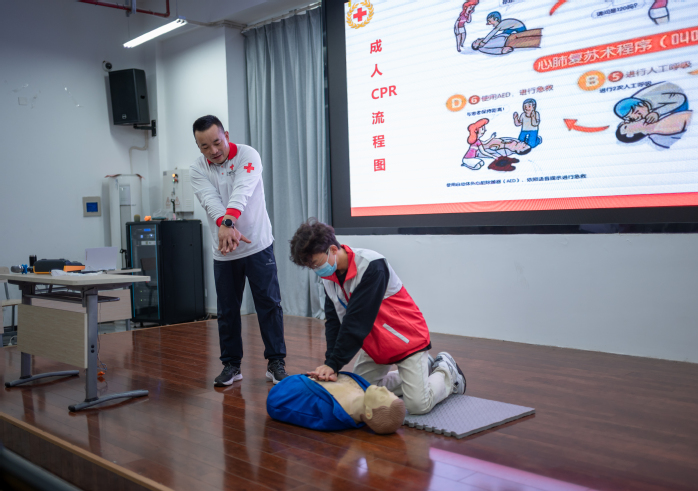 理论教学环节,授课专家以真实急救案例为切入点,系统讲解急救黄金4分钟的重要性,同时结合校园实际,详细讲解心肺复苏、AED使用、海姆立克急救法等实用急救技能,让学员们深刻意识到掌握急救知识不仅是对自身安全的守护,更可能成为他人生命的“摆渡人”。